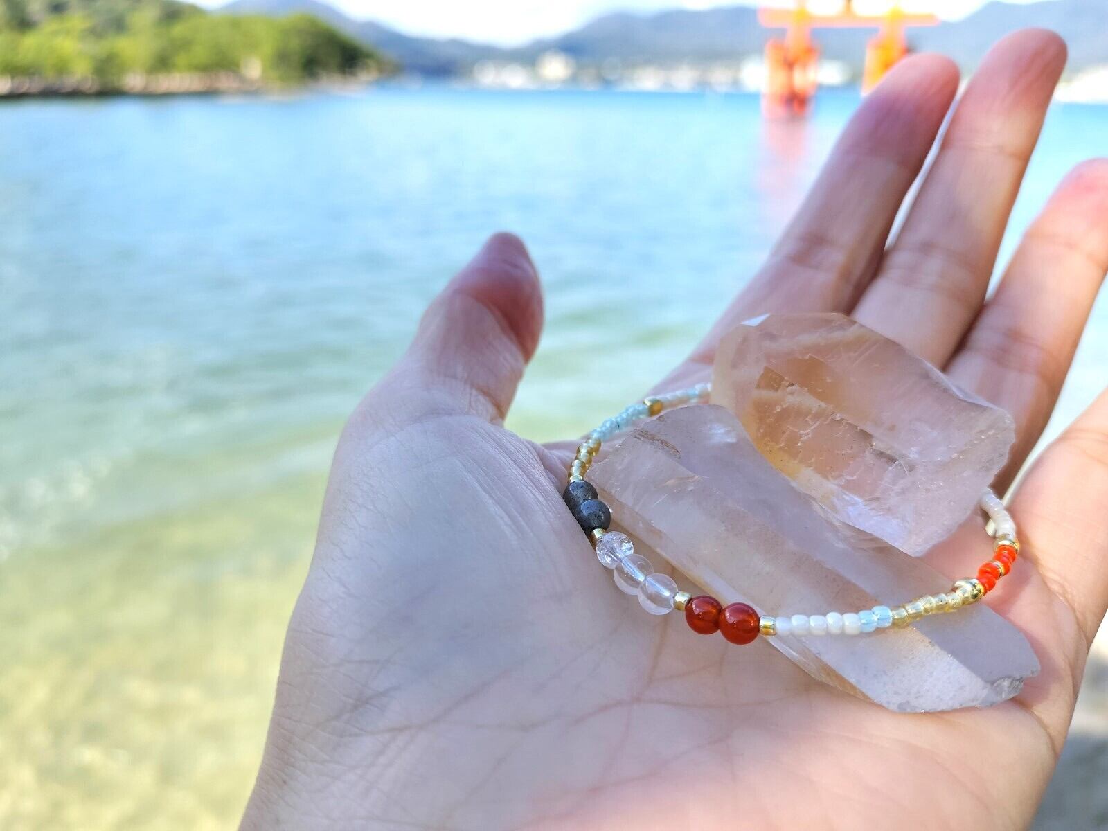 カーネリアン・ラブラドライト・クラッククォーツを、厳島神社の鎮座する厳島(宮島)でエネルギーチャージ。