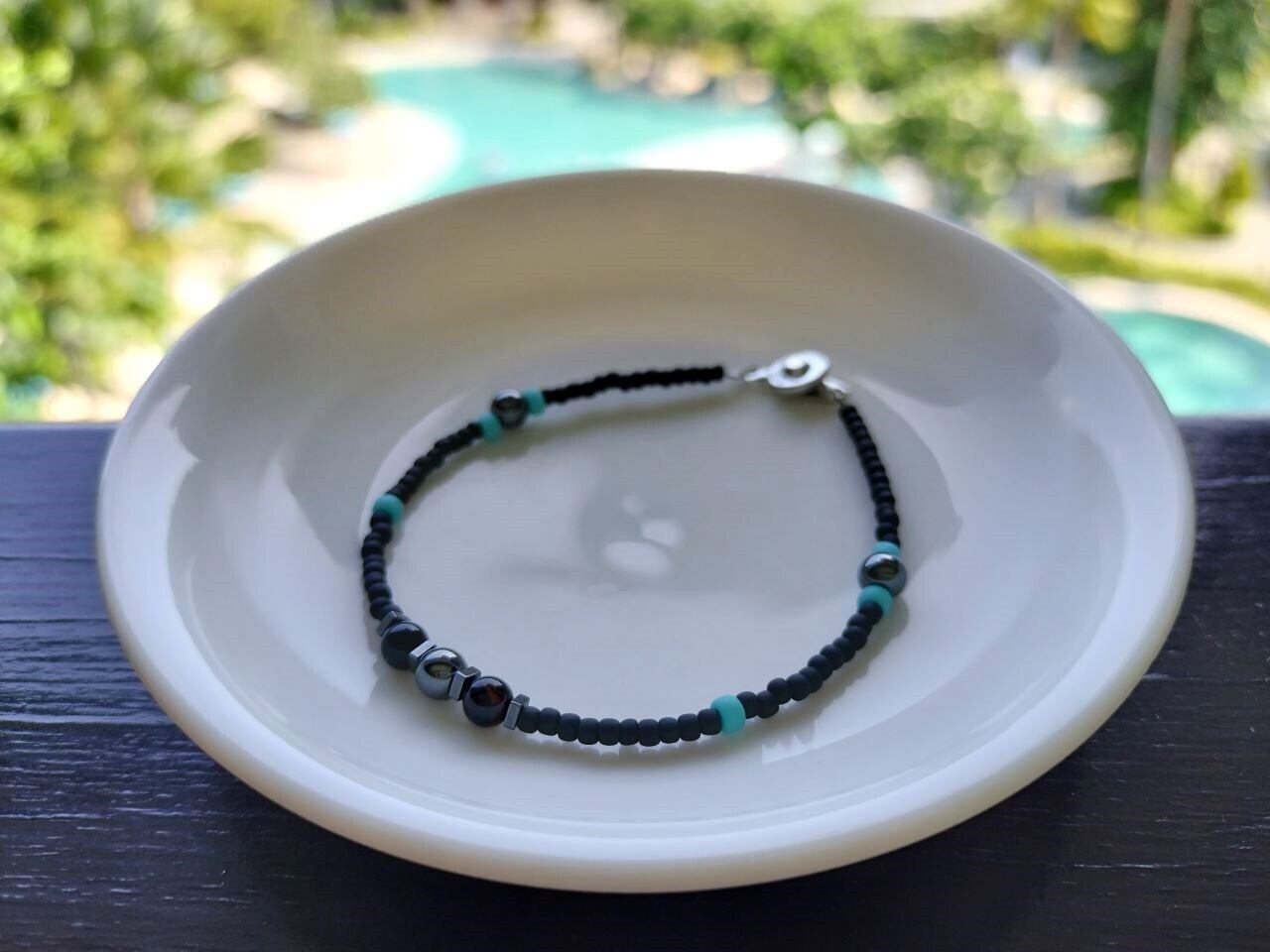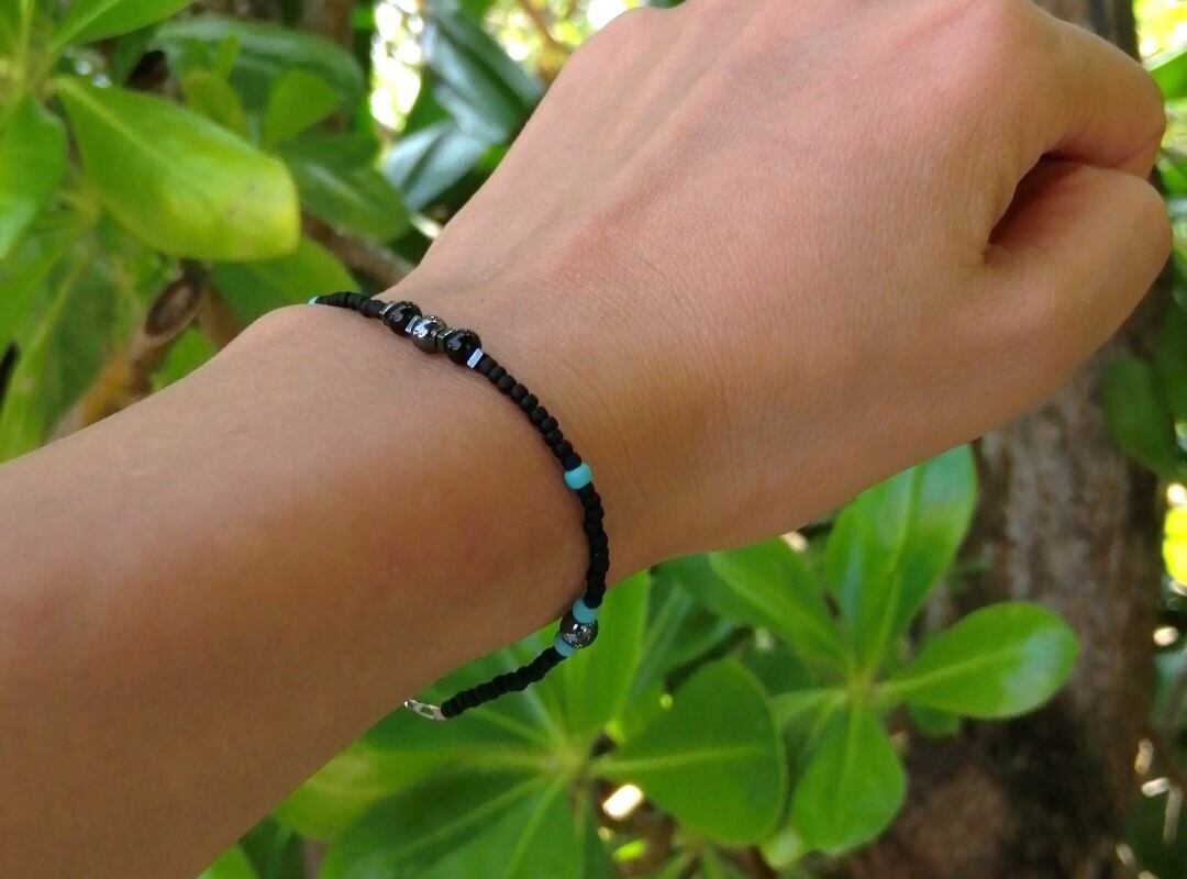 ●ビーズ:マットブラックカラー、マットターコイズブルーカラー